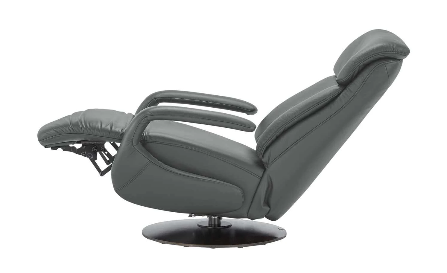Dieser drehbare Relaxsessel von himolla wird dank seiner Komforteigenschaften ganz leicht zum neuen Lieblings-Entspannungsort in Ihren vier Wänden. Die ergonomisch vorgeformte Rückenlehne ist extra dick gepolstert und lädt zum Erholen ein. Verstellen Sie das Fußteil und die Neigung der Rückenlehne ganz einfach mit der Fernbedienung. Eine Aufstehhilfe ist ebenfalls integriert und unterstützt Sie beim Aufstehen. Der komfortable Sessel ist komplett mit hochwertigem Echtleder bezogen und durch liebevoll gearbeitete Details akzentuiert. Der tragende Drehteller aus wengefarbener Buche rundet das stilsichere Erscheinungsbild des Designsessels gekonnt ab.