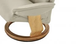 Lehnen Sie sich gemütlich zurück und entspannen Sie – auf dem Relaxsessel Farso. Er ist mit Kaltschaum gepolstert und mit einer zusätzlichen Nosag-Wellenunterfederung ausgestattet. Sie federt den Körperdruck noch besser ab. Farso verfügt über eine hohe Rückenlehne mit einem extra weichen Kopfpolster zum Anlehnen. Die Arme können Sie auf den beiden dick gepolsterten Armlehnen abstützen. Ein weiteres Highlight: die Relaxfunktion. Sie erlaubt eine mehrfache Verstellung der Rückenlehne. Farso ist mit Echtleder bezogen, das sich weich anfühlt und eine schöne natürliche Maserung hat. Gestell und Standfuß sind aus massivem geöltem Eichenholz gefertigt. Der Fuß ist mit einer Drehfunktion ausgestattet, die es Ihnen ermöglicht den Sessel leicht in die gewünschte Richtung zu drehen.