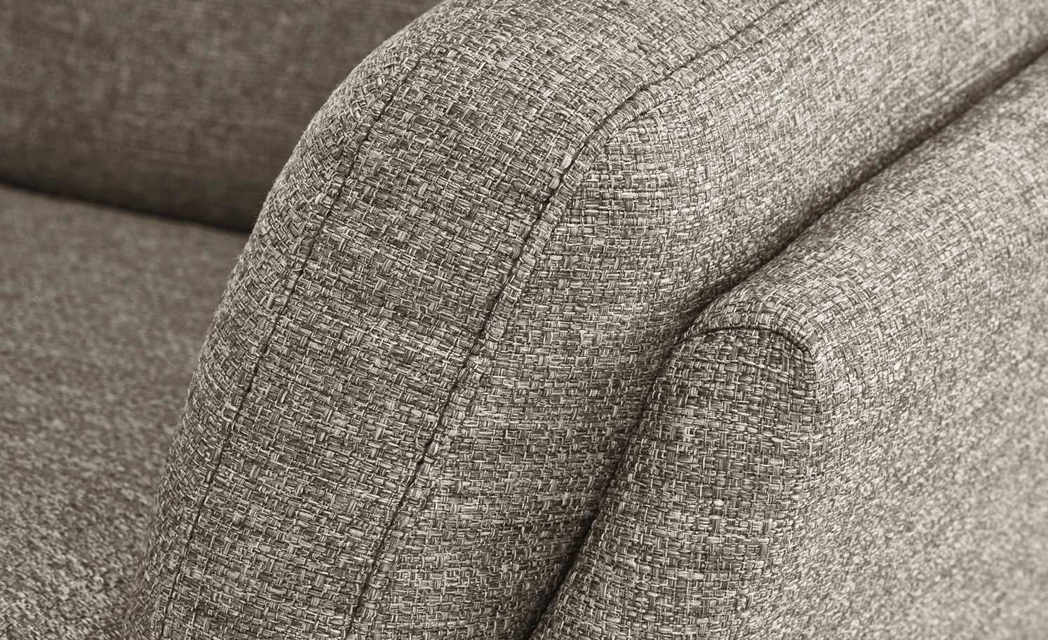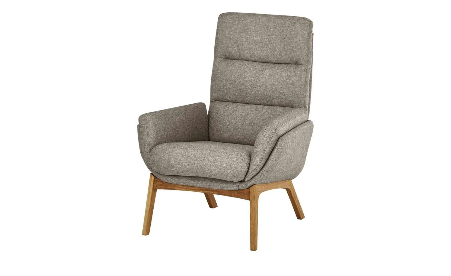 Skandinavisch-modern und gemütlich zugleich. Das ist der Sessel Torgen. Er ist aus besten Materialien gefertigt und hochwertig verarbeitet. Schließlich sollen Sie lange Freude an Ihrem Sessel haben. Die Sitzschale ist dick gepolstert und mit einer extra hohen Rückenlehne ausgestattet. Sie erlaubt es Ihnen, sich richtig gemütlich anzulehnen. Für den Bezug ist ein hochwertiger Webstoff verwendet worden. Er fühlt sich angenehm an und hat eine attraktive melierte Optik. So trägt zum frischen Gesamtlook des Sessels bei. Ein Eyecatcher ist die dekorative Steppung der Rückenlehne. Das Sesselgestell ist aus massivem Eichenholz gefertigt worden. Es hat eine schöne natürliche Maserung und setzt sich vom Bezug ab, ohne dabei unharmonisch zu wirken.