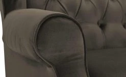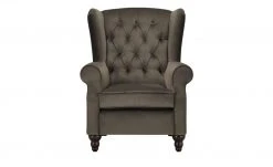 Der Ohrensessel Canyon ist ein gemütlicher Eyecatcher. Er ist weich gepolstert und verfügt über eine Wellenunterfederung im Sitzbereich. Sie federt den Sessel noch besser ab und soll zudem vorschnelles Durchsitzen verhindern. Die hohe Rückenlehne ist mit seitlichen Ohren ausgestattet. Sie laden Sie dazu ein, sich gemütlich anzulehnen. Auch die beiden Armlehnen haben eine angenehme Komforthöhe. Canyon hat ein attraktives, detailreiches Vintage-Design. Die Steppungen mit Zierknöpfen erinnern an den Chesterfield-Stil. Passend dazu ist auch der Bezug gewählt. Er besteht aus einem glänzenden Samtstoff.