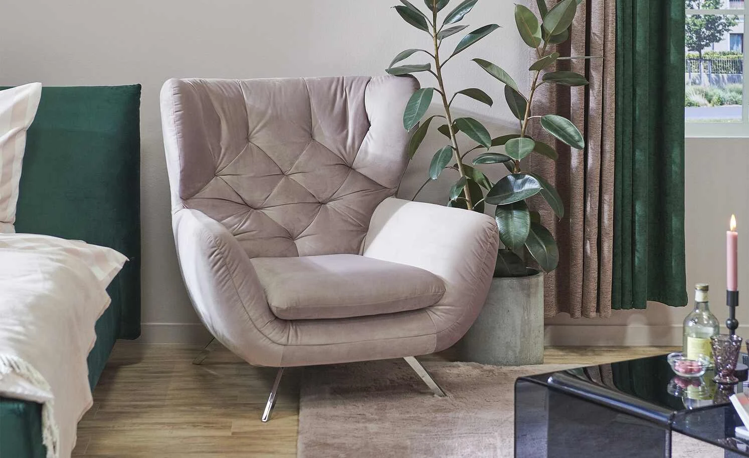- Bezug Sitz- und RĂĽckenlehne: Samt