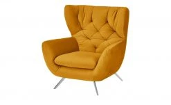 Der Eyecatcher des Sessels Caldara ist die hohe Rückenlehne. Sie ist dick gepolstert und mit Ohren ausgestattet, an die Sie sich anlehnen können. Auch die dekorative Steppung fällt sofort ins Auge. Sie gibt Caldara eine leichte Vintage-Note, die aber mit dem modernen Gesamtlook harmoniert. Caldara ist mit einem samtigen Stoff bezogen, der sich angenehm weich anfühlt. Sein leichter Glanz lässt die Farbe des Bezuges erstrahlen.