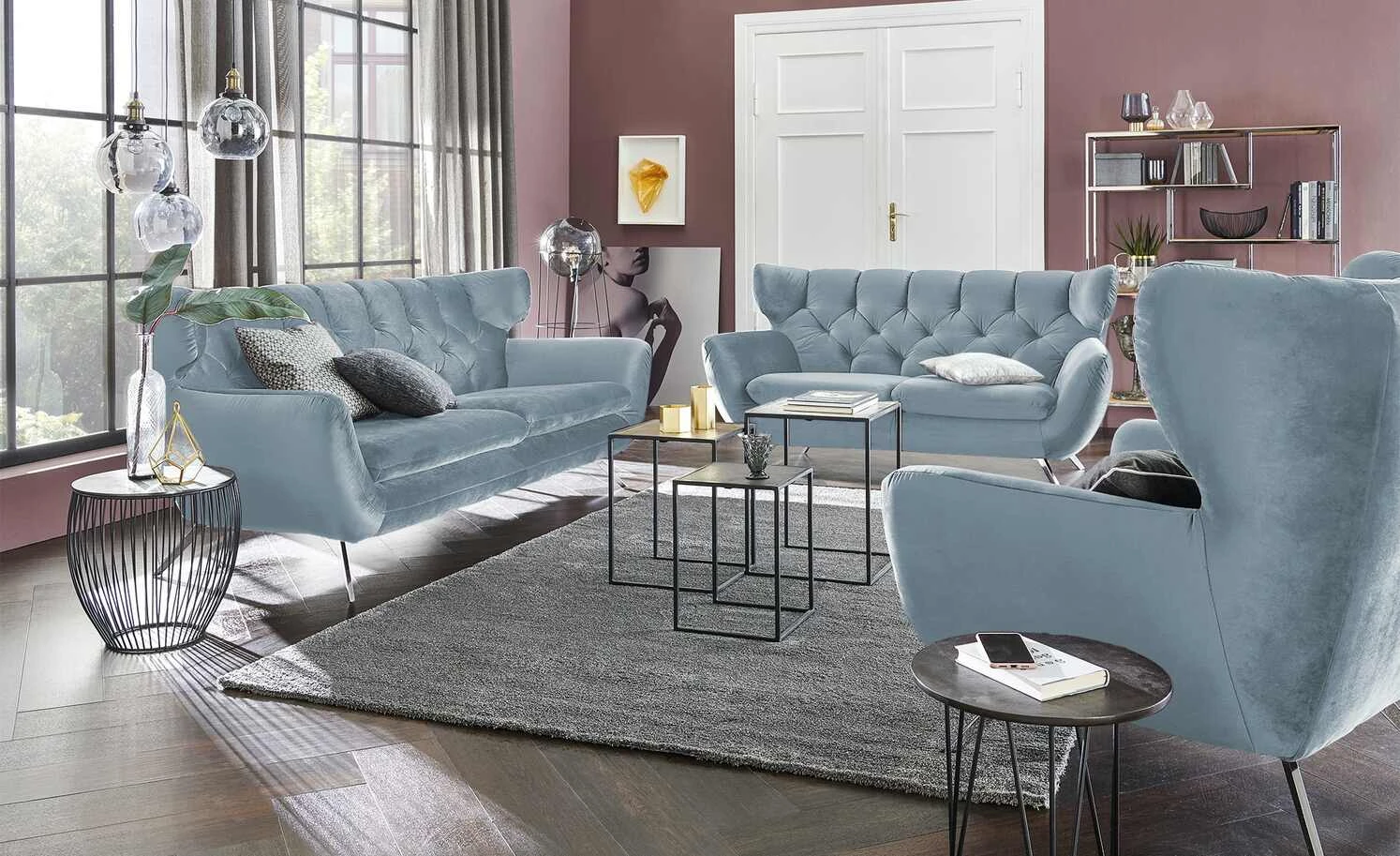 Der Eyecatcher des Sessels Caldara ist die hohe Rückenlehne. Sie ist dick gepolstert und mit Ohren ausgestattet, an die Sie sich anlehnen können. Auch die dekorative Steppung fällt sofort ins Auge. Sie gibt Caldara eine leichte Vintage-Note, die aber mit dem modernen Gesamtlook harmoniert. Caldara ist mit einem samtigen Stoff bezogen, der sich angenehm weich anfühlt. Sein leichter Glanz lässt die Farbe des Bezuges erstrahlen.