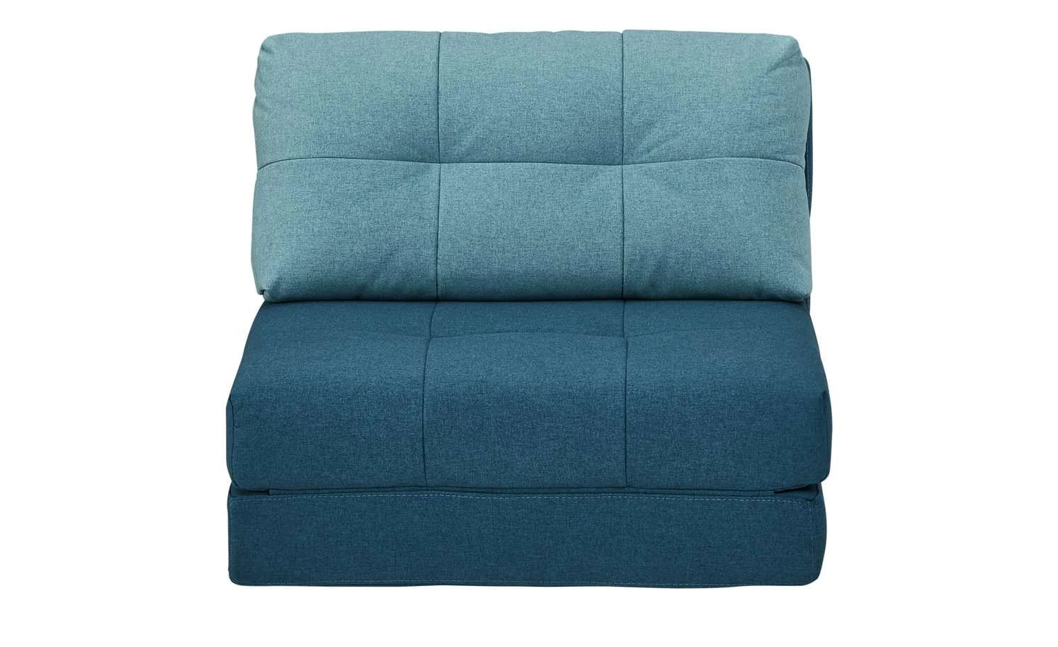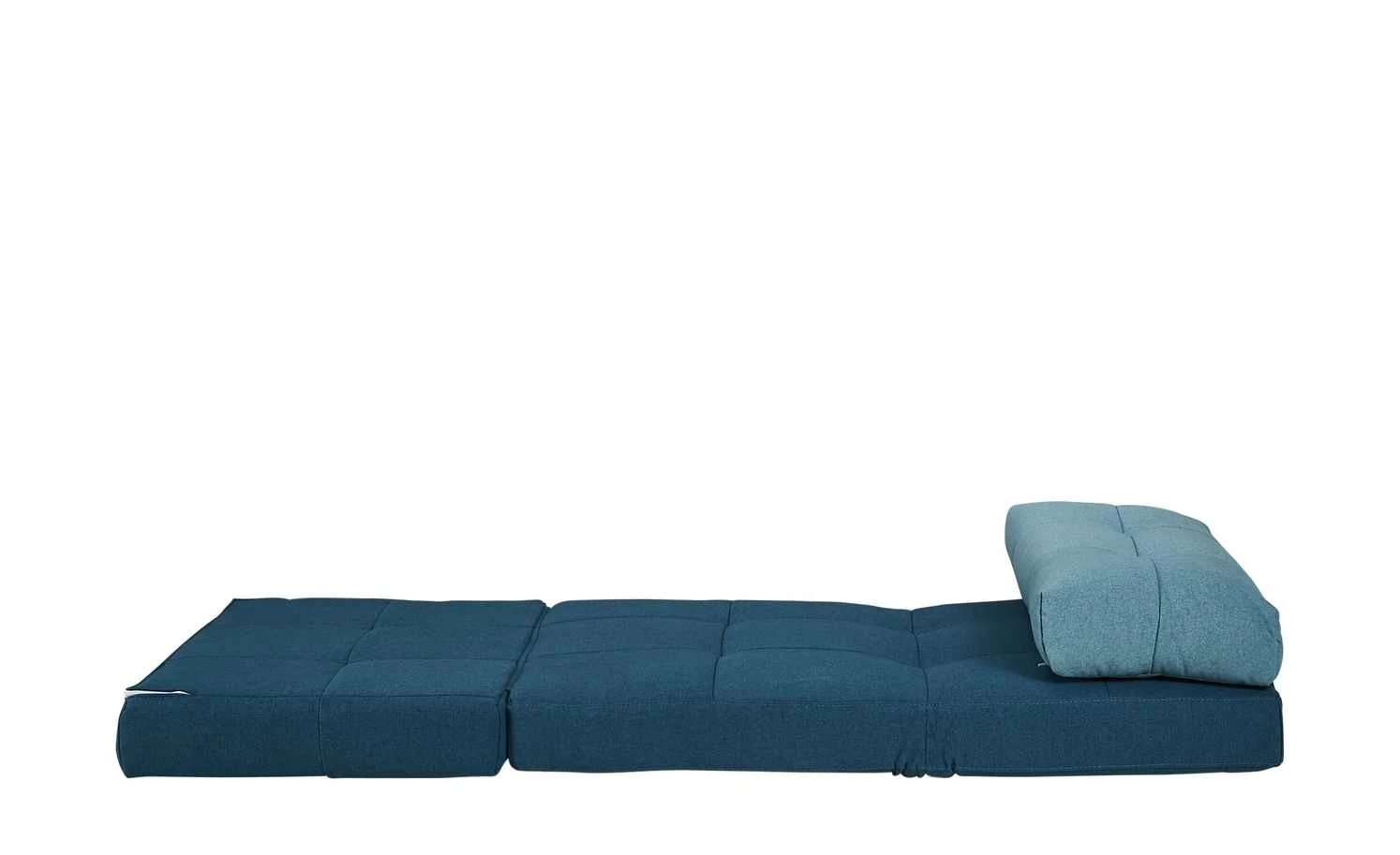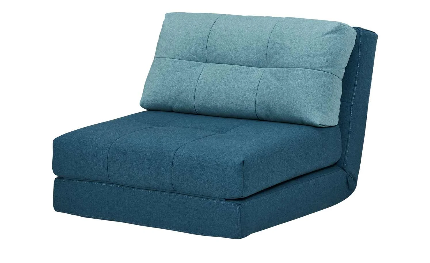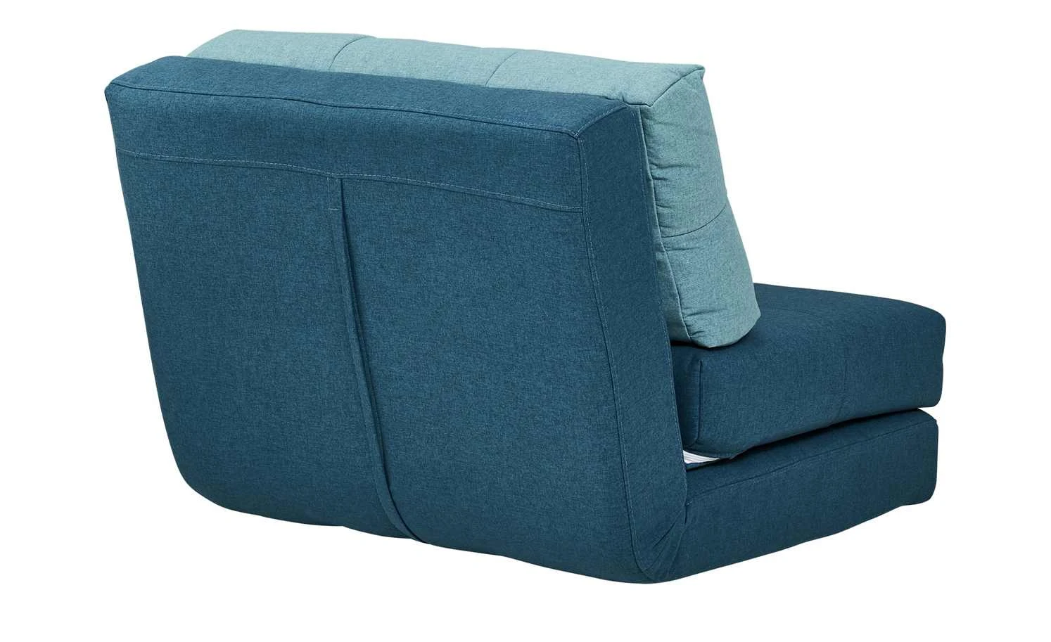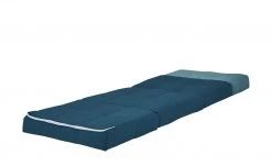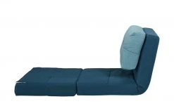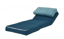 Becky ist Sessel, Liege und Schlafgelegenheit in einem. Das stabile, innenliegende Gestell aus massivem Eukalyptusholz ermöglicht das Verstellen des Sessels in diverse Positionen. Als Sessel können Kinder und Jugendliche bei einer Sitzhöhe von 31 Zentimetern bequem sitzen. Klappen Sie die weichen Schaumstoffpolster auseinander, wird Becky zur Relaxliege oder Liegefläche für Übernachtungsgäste. Der gesamte Schlafsessel ist mit petrolfarbenem Webstoff bezogen und kann dadurch frei im Raum platziert werden. Das Nackenkissen setzt sich in Türkis ab.