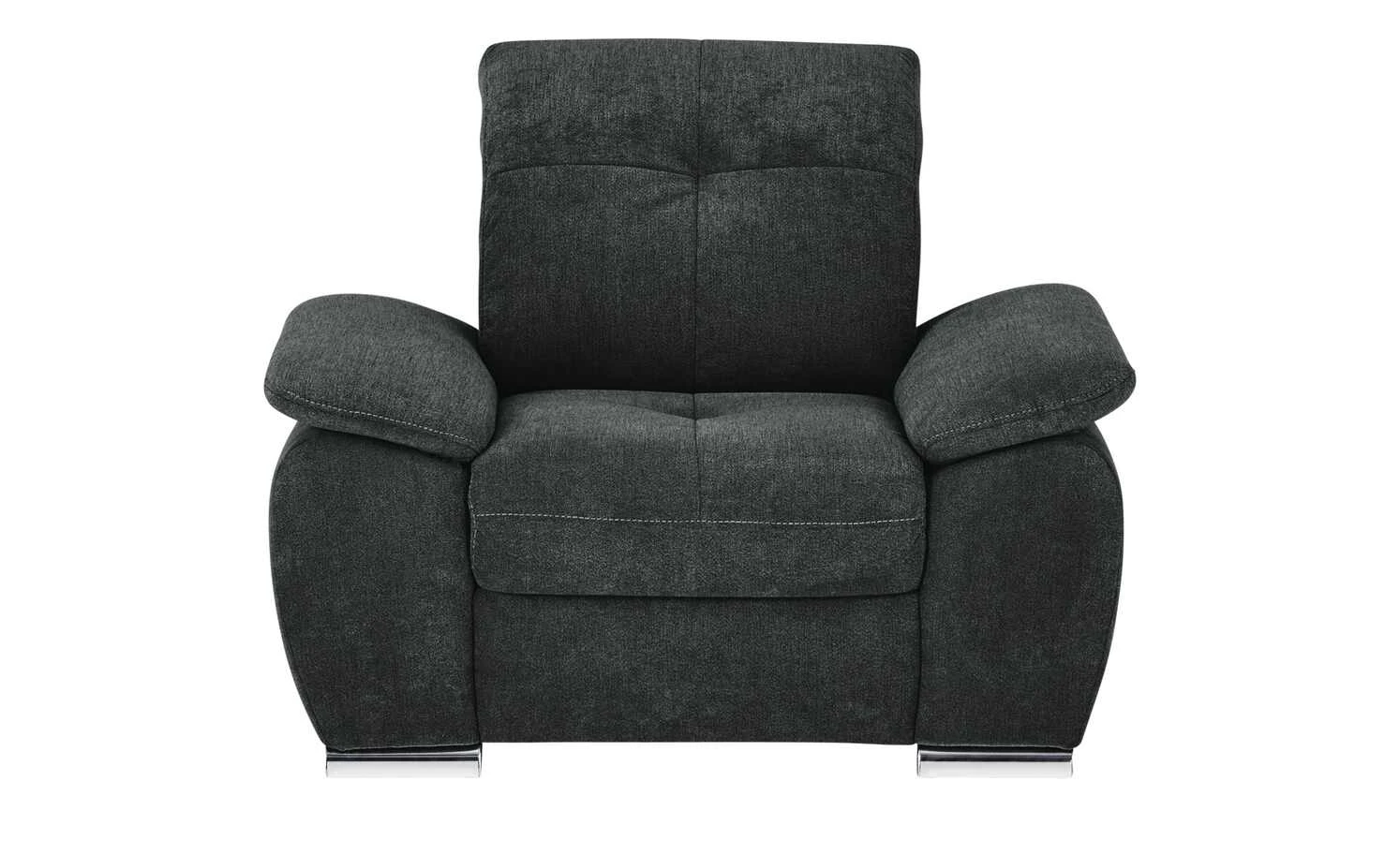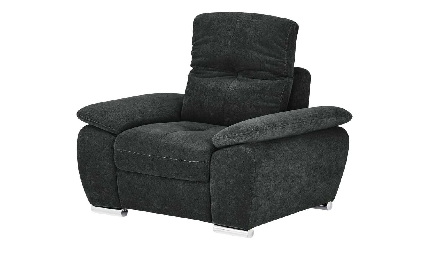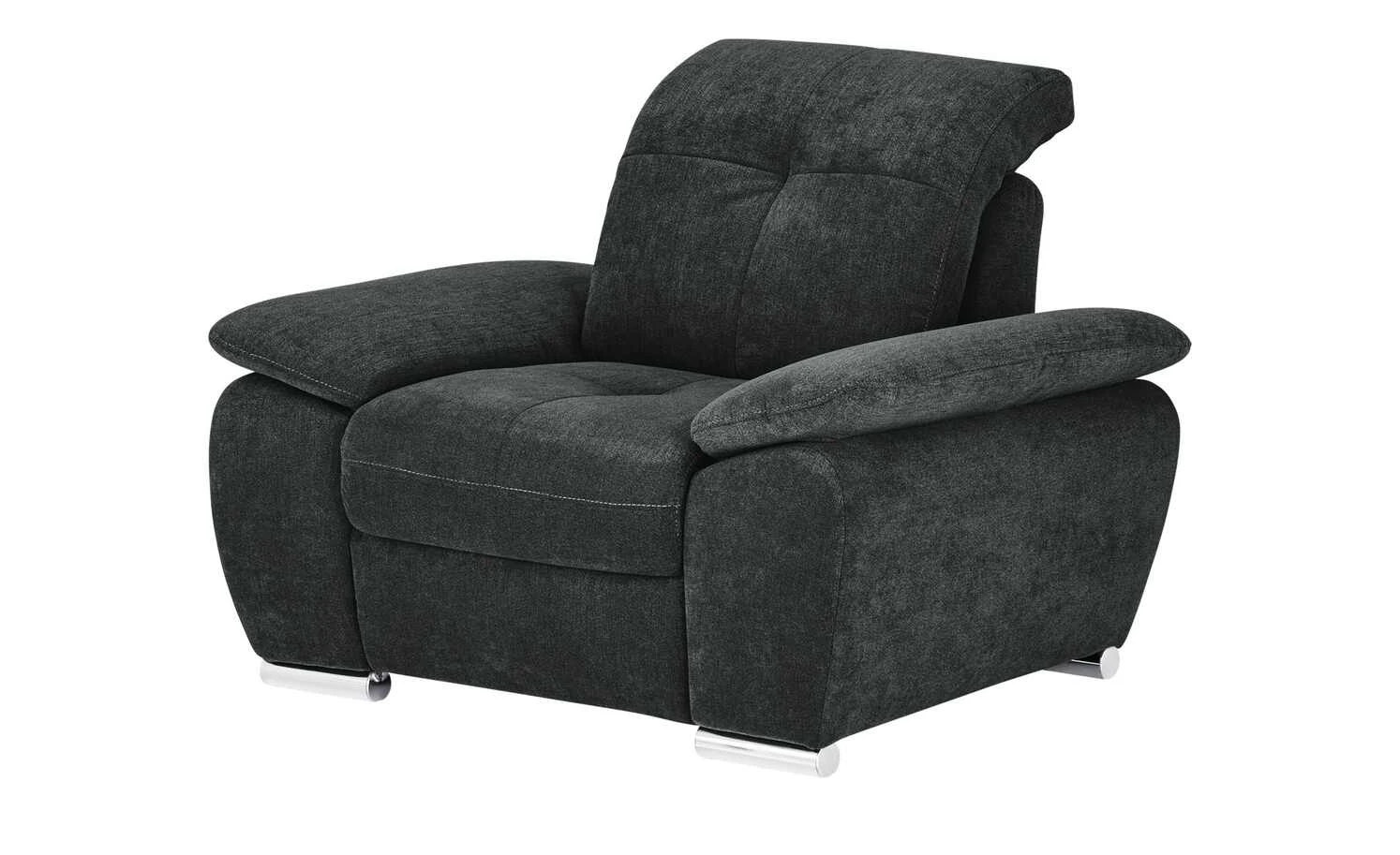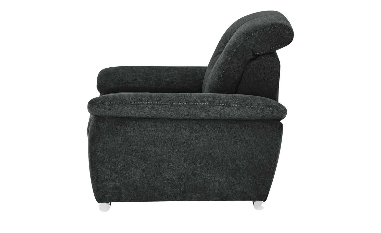 Der Sessel Gladys ist eine gemütliche Relaxoase für eine Person. Der ganze Sessel ist dick mit Kaltschaum gepolstert. Im Sitzbereich befindet sich eine zusätzliche Nosag-Wellenunterfederung, die für eine noch bessere Federung sorgt. Die hohe Rückenlehne ist zusätzlich mit einem verstellbaren Kopfteil ausgestattet. Bringen Sie es einfach in die gewünschte Position. Auch die beiden Armlehnen haben eine angenehme Höhe und tragen zum Gesamtkomfort bei. Gladays ist mit einer schwarzen Mikrofaser bezogen. Rollenfüße im Chromlook setzen dekorative Akzente.