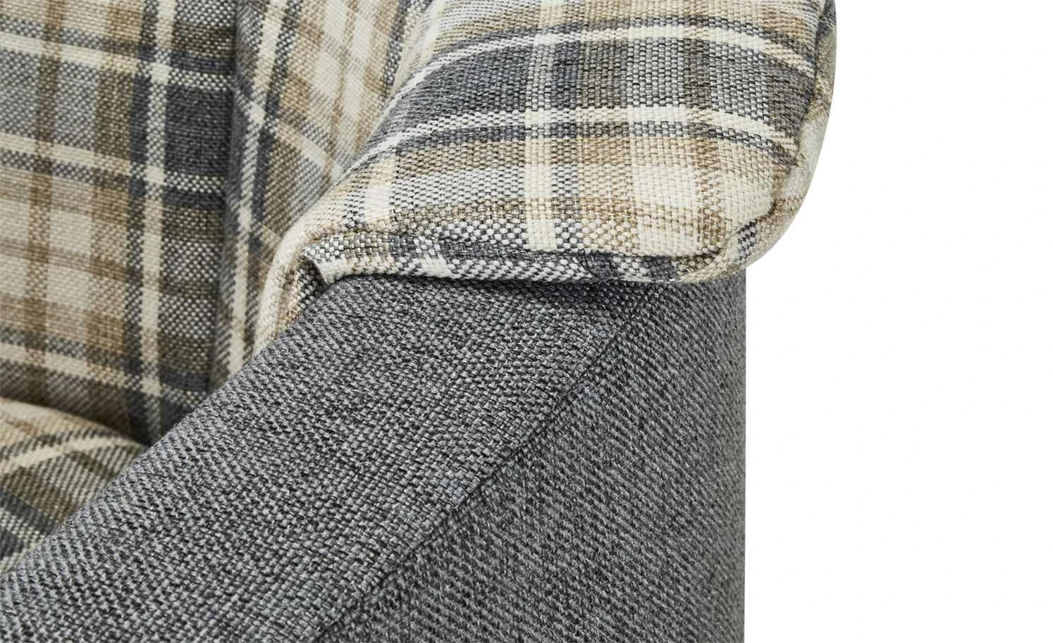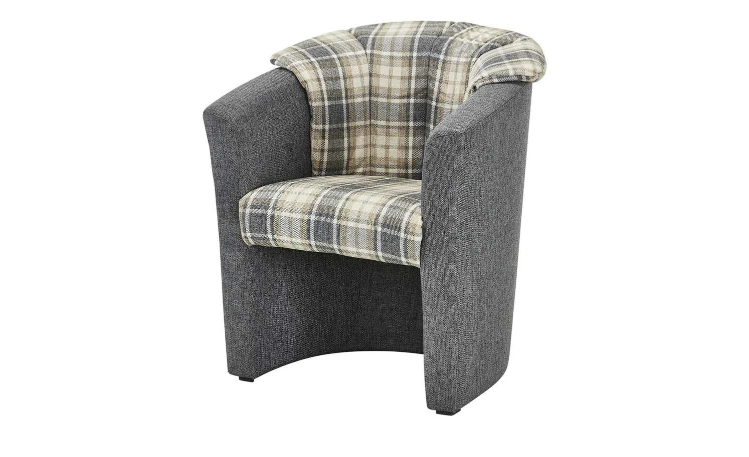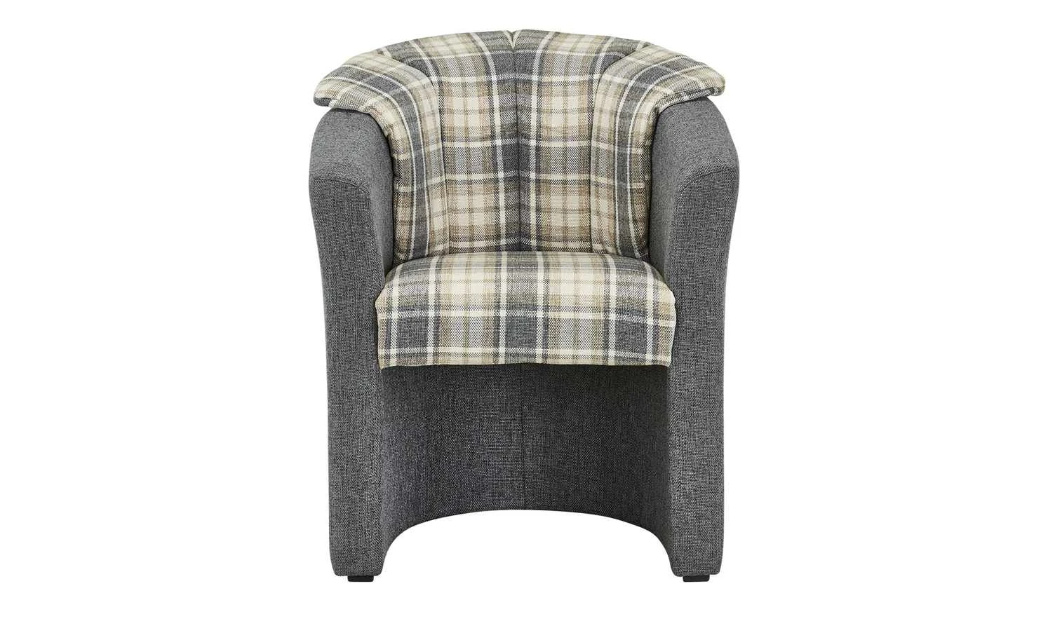 - Sitzbereich mit Beige-Grau-Karomuster