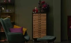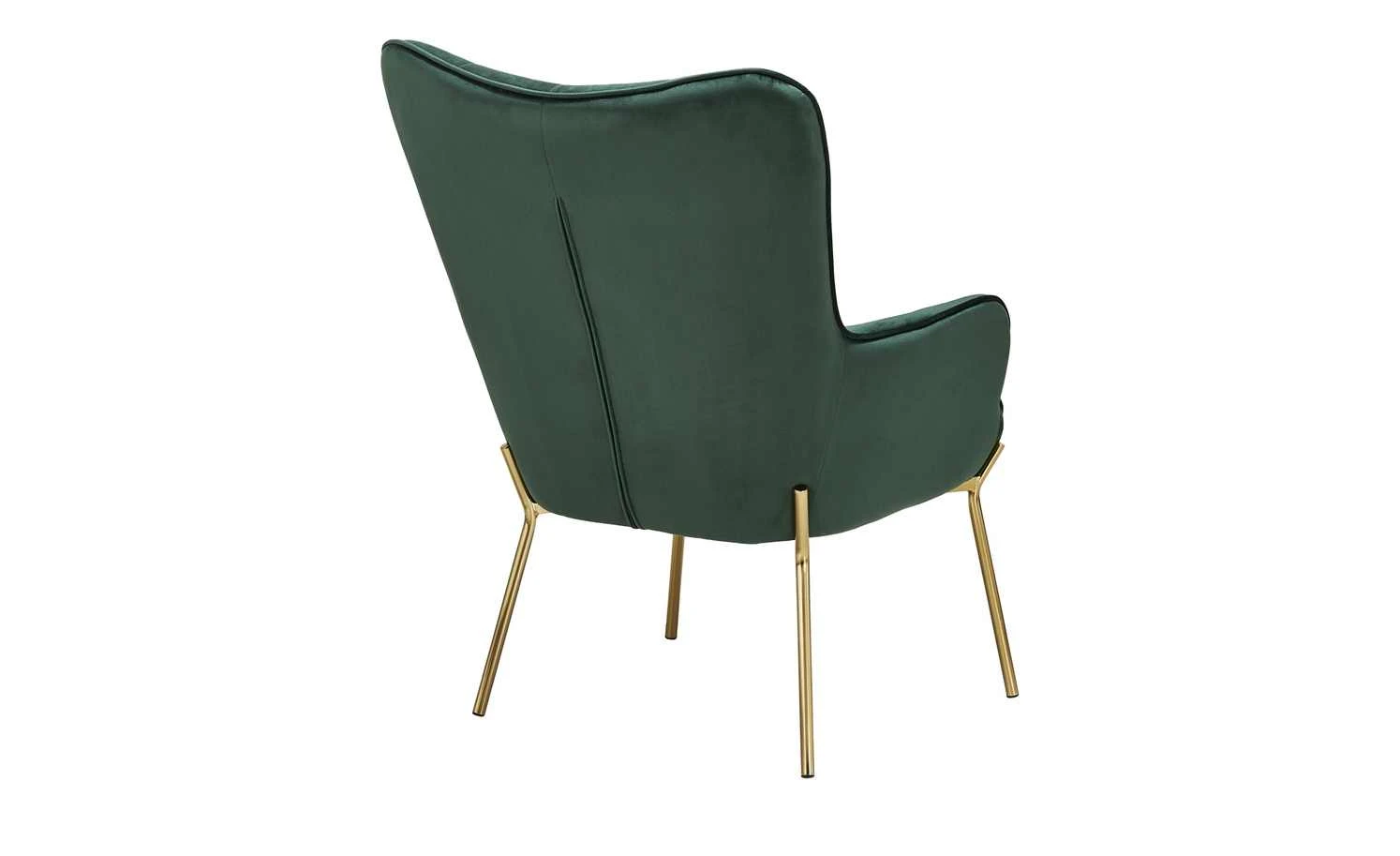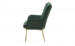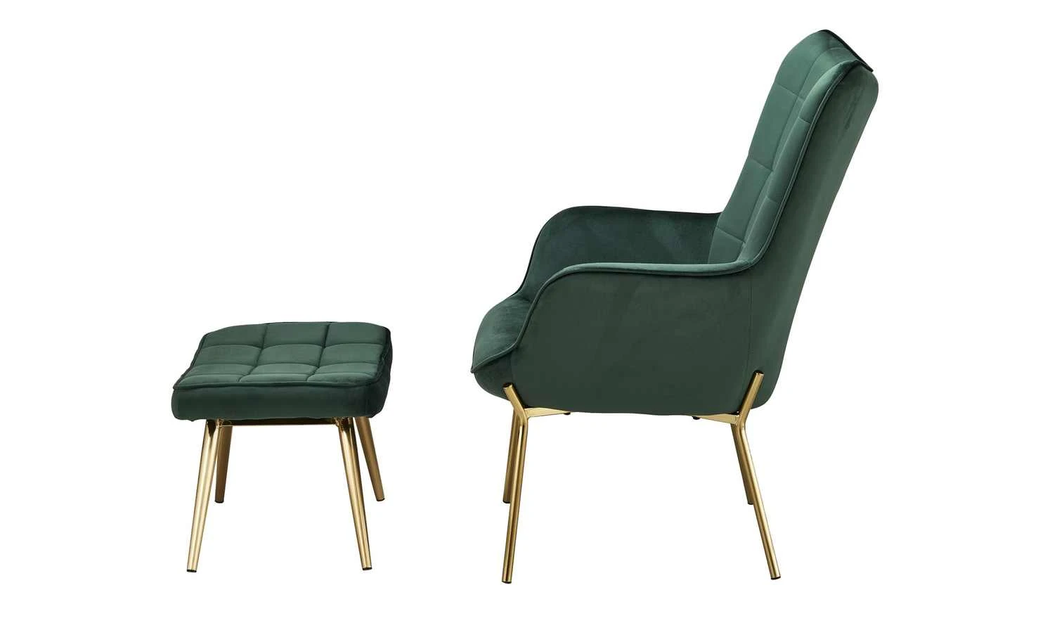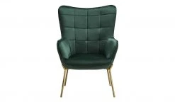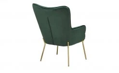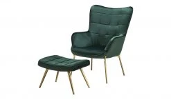 Machen Sie es sich gemütlich – auf dem Sessel Annika. Er wird mit einem passenden Hocker geliefert. Stellen Sie den Hocker direkt vor den Sessel und schon können Sie die Beine hochlegen. Sessel und Hocker sind dick mit Schaumstoff gepolstert. Der Sitzbereich wird zusätzlich von einer Wellenunterfederung abgefedert. Die Rückenlehne hat eine angenehme Höhe und eine gewölbte Form, die an einen Ohrensessel erinnert. Annika fällt durch den glänzenden Samtbezug ins Auge. Er ist in Höhe der Rückenlehne und auf der Sitzfläche des Hockers quadratisch gesteppt. Die Ränder werden durch einen Keder akzentuiert. Ein schöner Kontrast zu Bezug ist das goldfarbene Gestell.