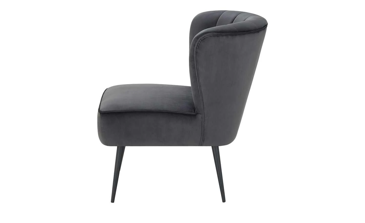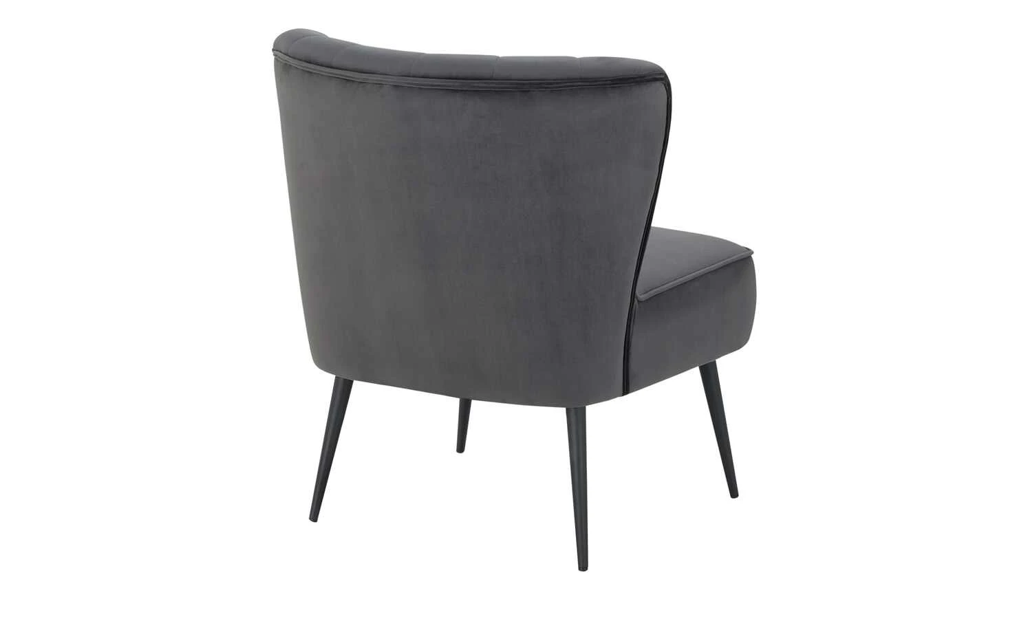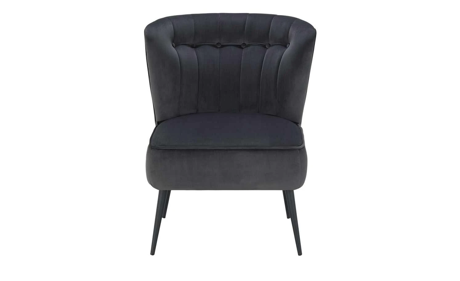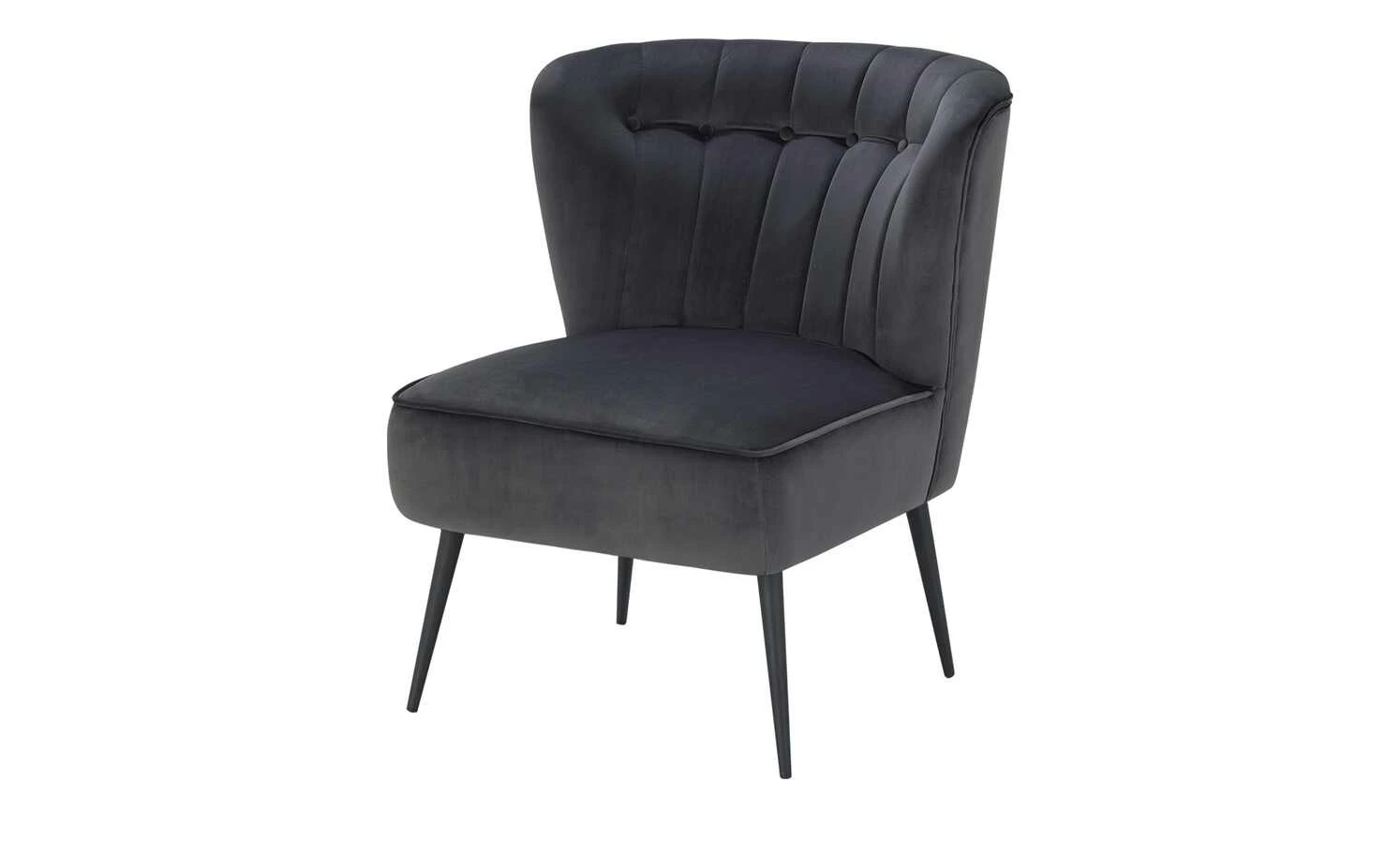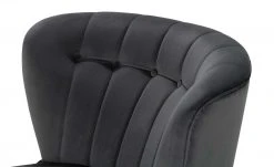 Besonders edel und komfortabel ist der Sessel Thessa. Der leicht schimmernde Bezug ist samtig weich und hebt sich von den langen schwarzen Metallfüßen ab. Die geschwungene Rückenlehne ist gesteppt und mit Zierknöpfen dekoriert. Machen Sie es sich bequem: Die dicke Schaumstoffpolsterung und die Wellenunterfederung gewährleisten einen langanhaltenden Sitzkomfort ohne vorzeitiges Durchsitzen.