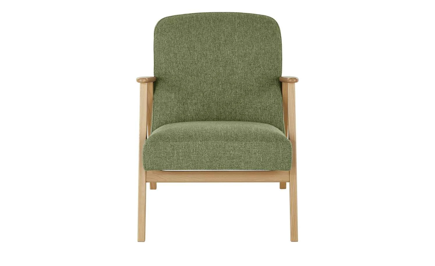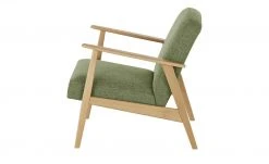 Wenn sich skandinavisches Design und Komfort vereinen, dann ist das Ergebnis: Der Sessel Rada. Sitz und Rückenlehne sind weich gepolstert und mit einem melierten Stoff bezogen. Der frische, leicht melierte Grünton ist ein Kontrast zum Gestell. Es ist aus massiver Buche Natur. Das Holz punktet mit seinem hellen, freundlichen Ton und der dezenten Maserung. Die offene Gestaltung lässt Rada luftig und leicht wirken.