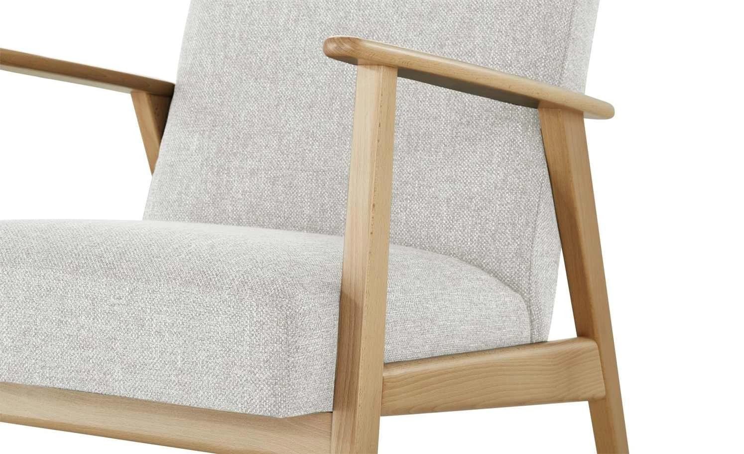 Wenn sich skandinavisches Design und Komfort vereinen, dann ist das Ergebnis: Der Sessel Rada. Sitz und Rückenlehne sind weich gepolstert und mit einem melierten Stoff bezogen. Das stylische, leicht melierte Silbergrau ist ein Kontrast zum Gestell. Es ist aus massiver Buche Natur. Das Holz punktet mit seinem hellen, freundlichen Ton und der dezenten Maserung. Die offene Gestaltung lässt Rada luftig und leicht wirken.