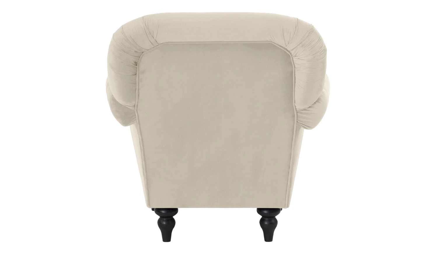 Der Sessel Sissi ist in seiner Gestaltung an den historischen Chesterfield-Stil angelehnt und strahlt Eleganz aus. Er ist an Armlehnen und Rückenlehne formschön abgesteppt und mit Zierknöpfen versehen. Weitere Akzente werden durch Metallnieten und die geschwundenen Holzfüße gesetzt. Diese sind aus massiver Kiefer und wengefarbig. Der dunkle Farbton passt gut zum Mikrofaserbezug. Dieser hat eine leicht samtige Optik, die zum Vintagestil des Sessels passt. Sitzbereich, Armlehnen sind weich gepolstert – der Sitzbereich außerdem mit einem Federkern ausgestattet.