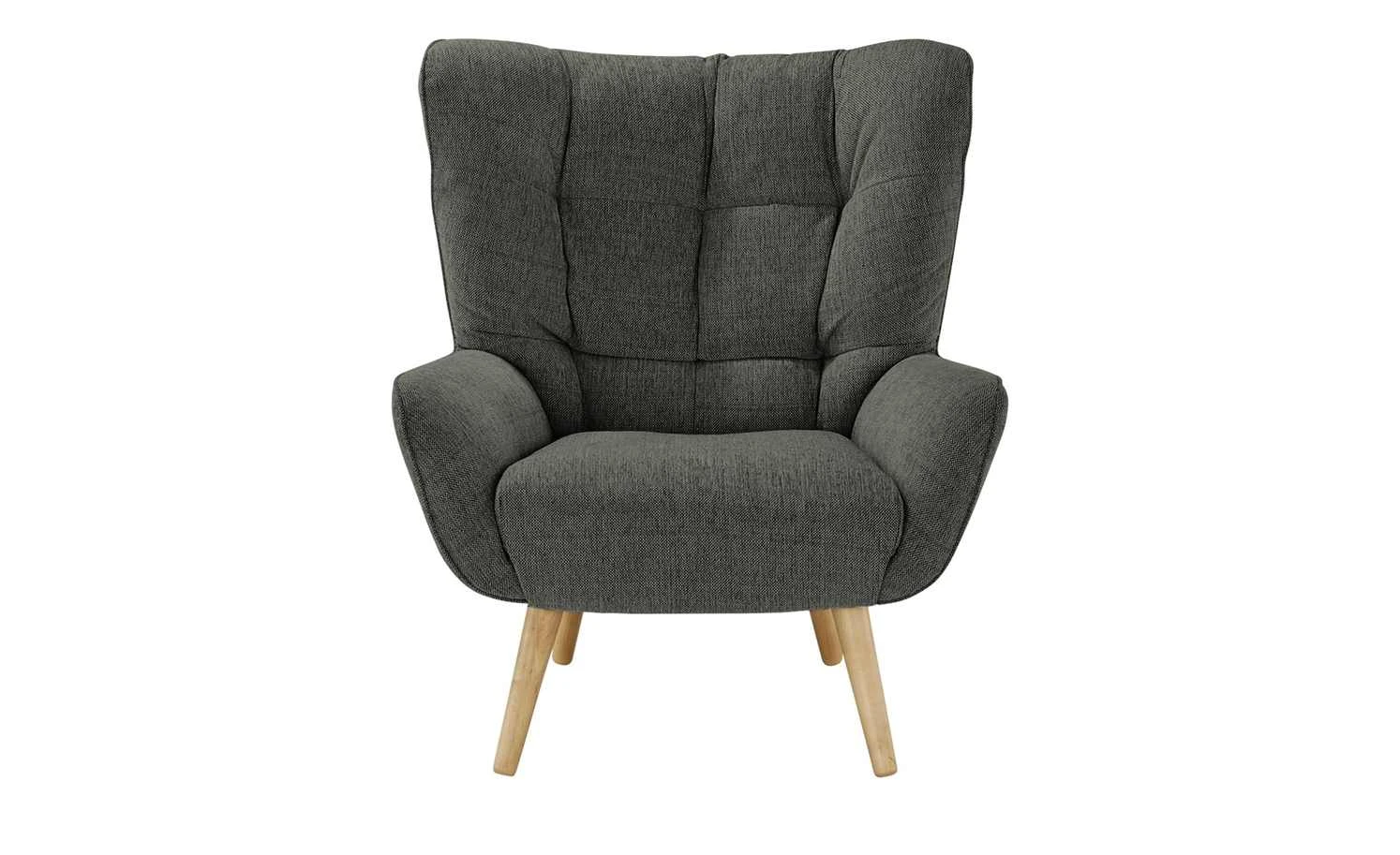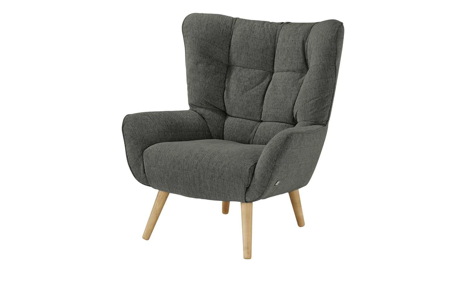Cooles skandinavisches Design und gemütliches Sitzen vereinen sich beim Polstersessel Jolyn von SOHO. Die dicke, fluffige Polsterung besteht aus hochwertigem Kaltschaum. Damit Sie sich gemütlich anlehnen können ist die Rückenlehne angenehm hoch und mit seitlichen Ohren ausgestattet. Weich gepolsterte Armlehnen sind ebenfalls vorhanden. Jolyn verfügt über eine hervorragende Verarbeitung. Für einen stabilen Stand – und natürliches Flair – sorgen die Füße aus massiver Buche in Eichenoptik. Der Sessel ist mit einem melierten Flachgewebe bezogen, der im Rückenbereich dekorativ gesteppt ist.