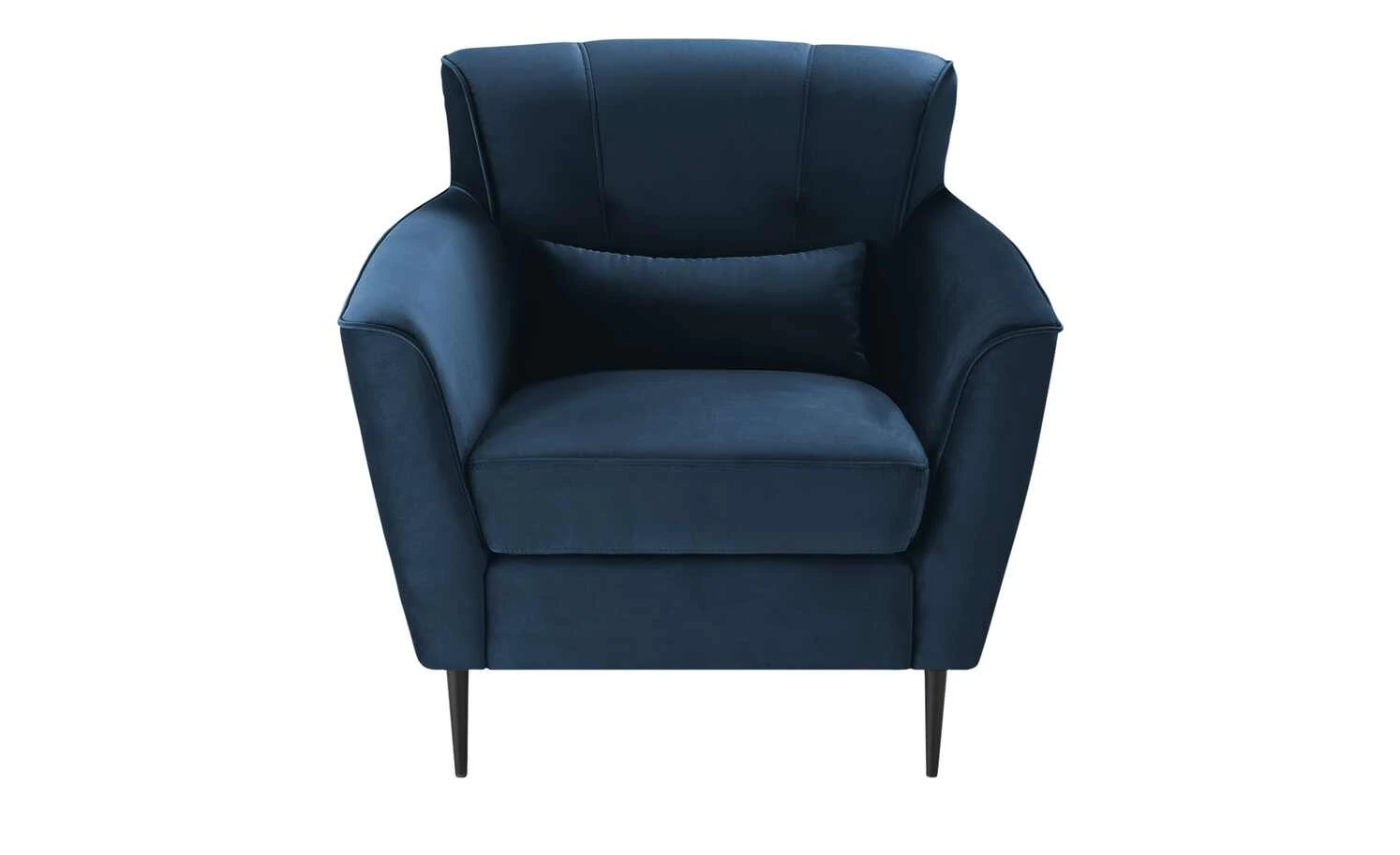 Bei diesem Sessel gehen Komfort und edles Design Hand in Hand. Der einladende Sessel besitzt eine dicke, hochwertige Schaumstoffpolsterung und Armlehnen in Komforthöhe. Auch die dezent gesteppte Rückenlehne ist gepolstert. So können Sie sich entspannt anlehnen und den Abend mit einem Buch oder vor dem Fernseher genießen. Der samtig weiche, pflegeleichte Bezug schimmert leicht und harmoniert gekonnt mit den schwarzen Metallfüßen.