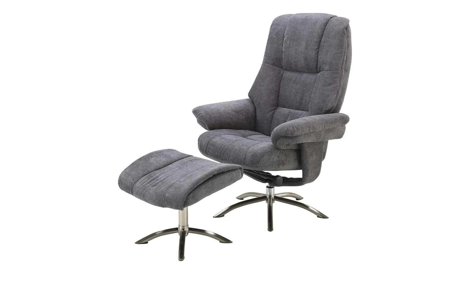 Der Relaxsessel Gina lädt zum Entspannen ein. Lehnen Sie sich zurück und verstellen Sie ganz einfach die gesteppte Rückenlehne des Sessels. Die Kombination aus hochwertiger Schaumstoffpolsterung und Wellenunterfederung sorgt für langanhaltenden, hohen Sitzkomfort. Legen Sie die Füße hoch: Im Set enthalten ist ein drehbarer Hocker, der optisch zum Relaxsessel passt. Beide Polstermöbel sind mit einem weichen, leicht gesteppten Mikrofaserbezug bezogen.